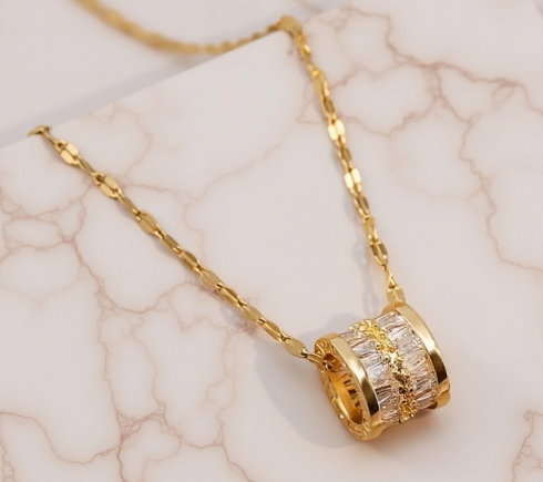 Acero inoxidable chapado en oro, una cadena de clavícula ligera.